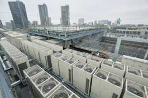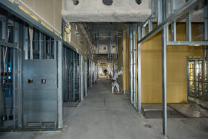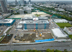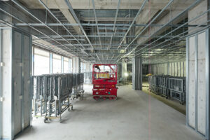 病院本体棟は、各階で内装・設備工事、外装工事を進めています。保育棟・講堂棟でも内装・設備工事、外装工事を進めています。